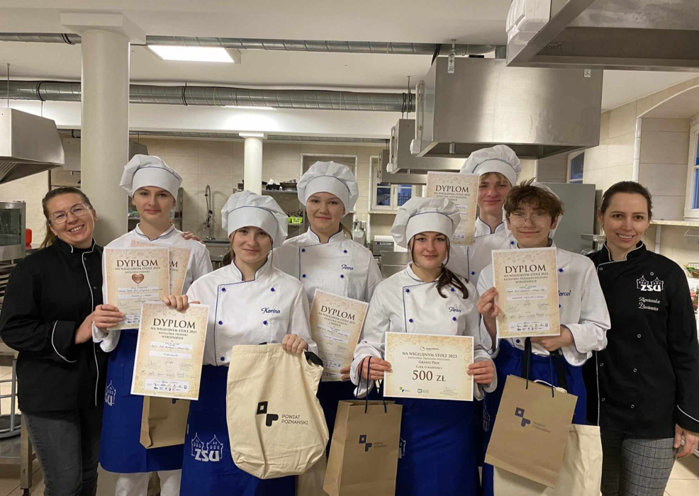 10 grudnia 2023 r. uczniowie Zespołu Szkół Usługowych w Ostrowie Wlkp., uczęszczający do 1 klasy w zawodzie technik żywienia i usług gastronomicznych, wzięli udział w regionalnym konkursie „Na wigilijnym stole 2023”, który odbył się w Pałacu w Szreniawie i miał na celu promocję przygotowywania oraz podawania tradycyjnych w Polsce potraw i wypieków wigilijnych.