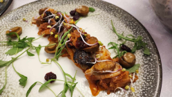Michałowi Kasprzykowi II MIEJSCE za ,,Kremowy przysmak rybny z groszkiem ptysiowym i faworkiem z karpia”