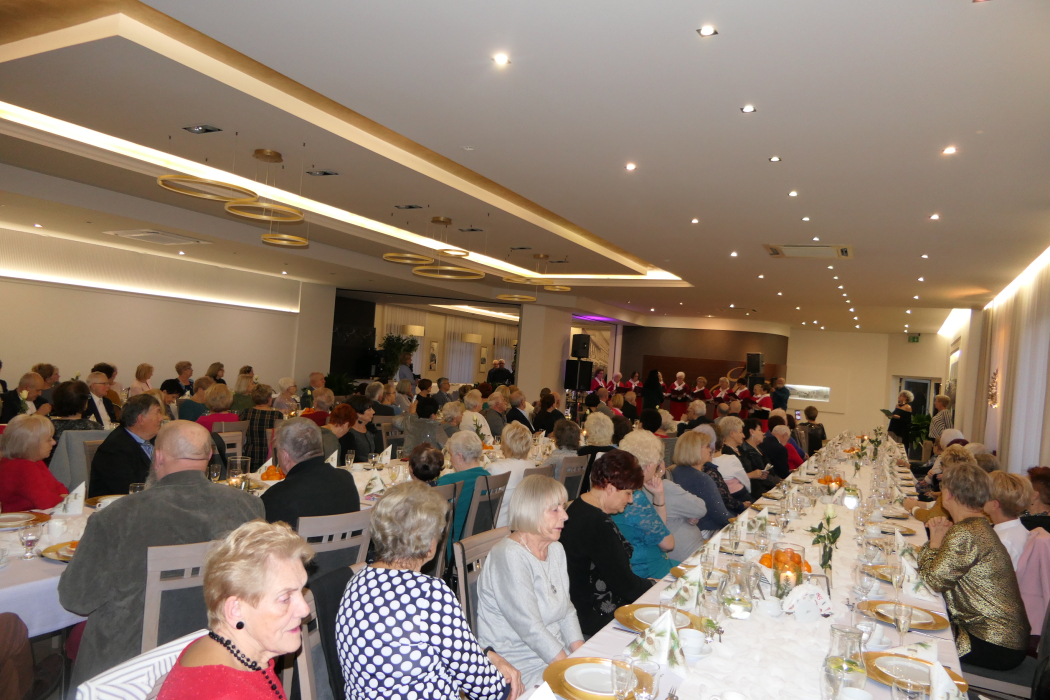 Wystarczyło spojrzeć na uśmiechnięte twarze 120-osobowej grupy seniorów uczestniczących w biesiadzie świąteczno-noworocznej, aby zobaczyć radość i zadowolenie ze wspólnego spędzania czasu. To był czas niezapomnianych przeżyć i wielkich wzruszeń, kiedy uświadamiamy sobie, jak tego typu spotkania wzbogacają treść życia osób starszych, wpływają na budowanie, pogłębianie i umacnianie dobrych relacji między ludźmi oraz na wyzwalanie pozytywnej energii dla znalezienia nowych bodźców do działania w Nowym Roku.