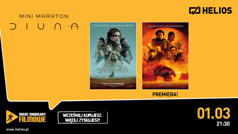 Bilety: https://www.helios.pl/65,Ostrow-Wielkopolski/BazaFilmow/Szczegoly/film/31445/MINI-MARATON-DIUNA