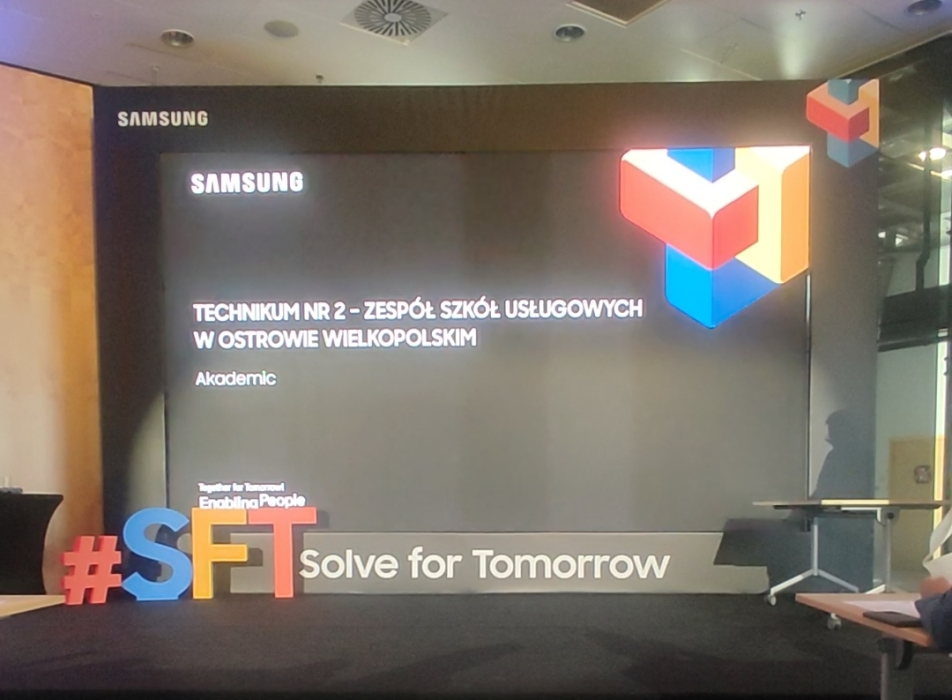 Projekt „Akademic” okazał się bezkonkurencyjny i głosami jury zajął I miejsce. Podczas Wielkiej Gali Solve For Tomorrow zespół wraz z opiekunką odebrali z rąk szefa Samsung Electronics Polska Pana Conora Pierca oraz ESG Manager Samsung Electronicis Polska Pani Magdaleny Olborskiej nagrody ufundowane przez organizatora. Nagroda w postaci ekranu Samsung Flip Pro trafi również do Zespołu Szkół Usługowych.