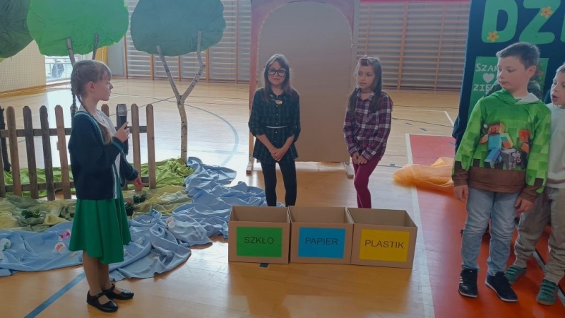 Co roku 22 kwietnia obchodzimy Światowy Dzień Ziemi. Jest to największe ekologiczne święto, obchodzone na całym świecie od 1970 r. Wszelkie działania podejmowane w tym dniu mają przyczynić się do zwiększenia świadomości, jaki wpływ my ludzie wywieramy na środowisko. Dzień Ziemi co roku odbywa się pod innym hasłem przewodnim. Tegoroczne hasło to: „Planeta kontra tworzywa sztuczne”. Była to okazja do propagowania postaw proekologicznych oraz nawiązywała do problemów związanych z ekologią, które stały się wyzwaniem XXI wieku, a zwróciła na nie uwagę dyrektor szkoły Urszula Twardowska. Uczniowie klasy II b przygotowali przedstawienie ekologiczne mówiące o konieczności ochrony środowiska. W ramach święta odbył się pokaz mody, podczas którego uczniowie klas I – IV prezentowali stroje wykonane z materiałów odpadowych oraz prezentowali hasła ekologiczne. Uroczystości towarzyszyła wystawa plakatów ekologicznych, a na zakończenie uroczystości uczniowie włączyli się w akcję upiększania ogródka szkolnego i zasadzili kwiaty. Dzień Ziemi jest świętem naszej pięknej planety. Pragniemy wychować dzieci na obrońców jej zasobów, uczulić wszystkich ludzi na potrzebę dbania o nią, bo przecież „marnotrawstwo nie zapewnia przyszłości". Obchody Dnia Ziemi zostały przygotowane przez Małgorzatę Wieczorek. Violettę Lebdę, Elżbietę Bachorską oraz Justynę Wojtkowiak.