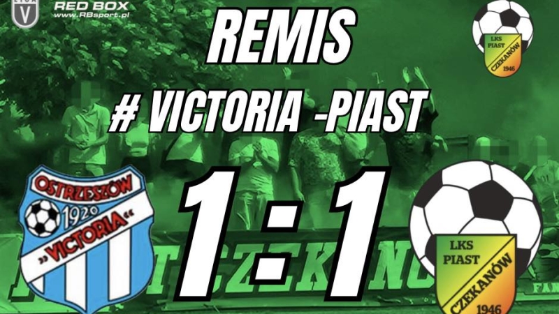 W meczu z zamykającą tabelę z dorobkiem 2 punktów zdobytych w 25 meczach Victorią Ostrzeszów zwycięstwo było poniekąd obowiązkiem Piasta Czekanów. Niestety borykający się od pewnego czasu z problemem braku skuteczności zespół z Czekanowa nie potrafił się przełamać nawet z tak mało wymaającym zespołem. Czekanowianie owszem, zdobyli bramkę do szatni po 44 minutach bezskutecznych starań i wydawało się, że w drugiej połowie może być już tylko lepiej. Tymczasem było lepiej, ale dla gospodarzy, którym w 66 minucie udało się doprowadzić do wyrównania.