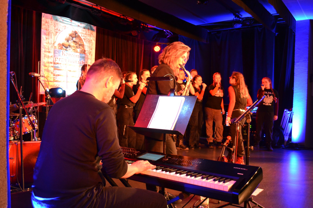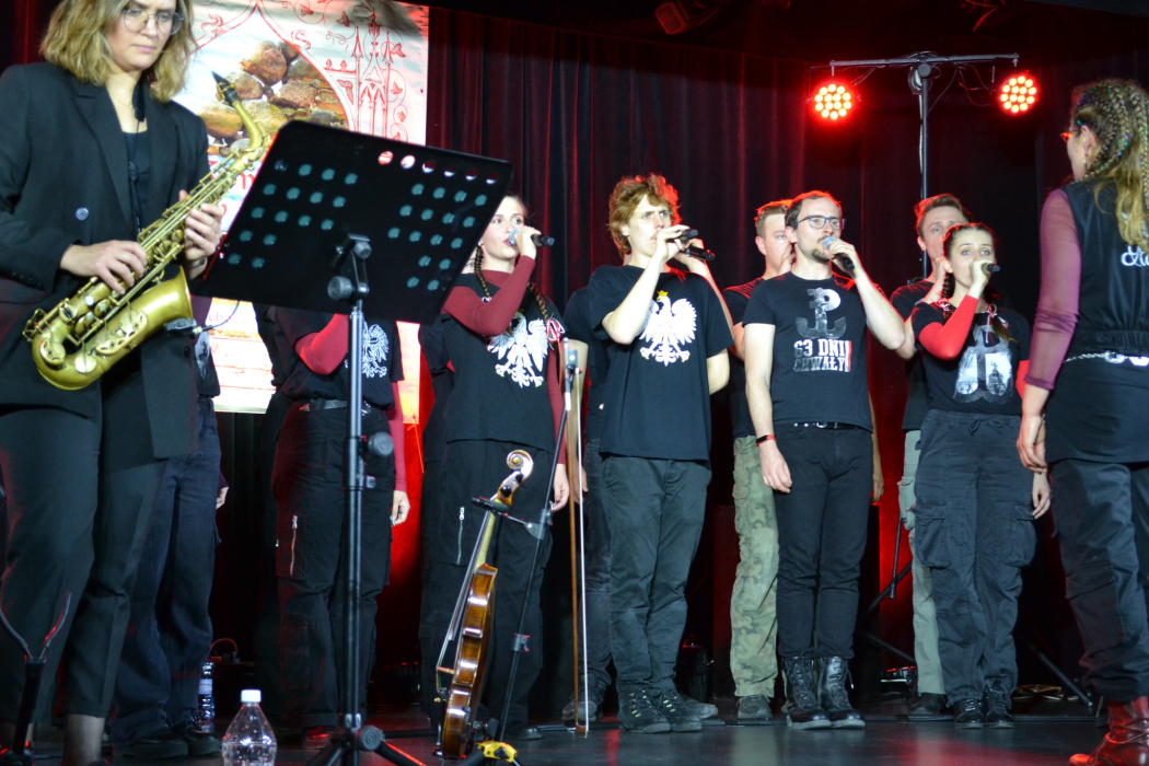 Repertuar przygotował Chór Rozrywkowy „Jaszczury” z Krakowa – zespół młodych artystów, który od dwóch dekad zachwyca publiczność swoją energią i szczerością. Pod kierunkiem Doroty Kondraciuk chór zaprezentował nie tylko znakomite wykonania, ale też autentyczne emocje. Były to historie opowiedziane głosem pokolenia, które nie zna wojny, ale potrafi oddać jej ducha z ogromnym szacunkiem. Pieśni takie jak „My, Pierwsza Brygada”, „Czerwone maki na Monte Cassino”, „Warszawskie dzieci” czy „Ballada o Janku Wiśniewskim” wybrzmiały mocno i poruszająco - każde wykonanie było opowieścią o odwadze, poświęceniu i nadziei. Koncert stał się prawdziwym pomnikiem pamięci – żywym i pulsującym emocjami. Pomimo zmiany miejsca, duch wydarzenia pozostał niezmienny – był to wieczór pełen wzruszeń, refleksji i dumy z historii naszego kraju.