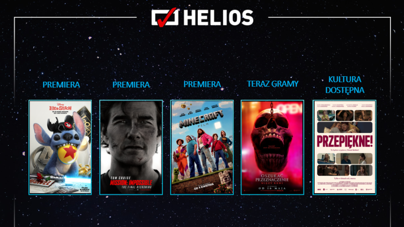 Kinowy repertuar w nadchodzącym tygodniu okaże się bogaty w wyczekiwane nowości. Na ekranach zagoszczą aż dwie gorące premiery: najnowsza odsłona brawurowej serii „Mission: Impossible - The Final Reckoning” oraz pełna humoru produkcja „Lilo i Stitch”. Nie zabraknie też innych, różnorodnych hitów, dlatego Helios zachęca do zaplanowania rodzinnej wizyty w kinie, także z okazji zbliżającego się Dnia Matki!