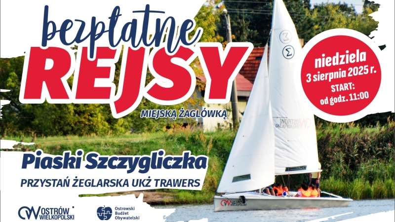 Bezpłatne rejsy startują w najbliższą niedzielę, 3 sierpnia, od godziny 11:00. Organizatorem wydarzenia jest Miasto Ostrów Wielkopolski oraz Uczniowski Klub Żeglarski "Trawers".