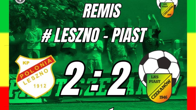 Cenny punkt wywalczyli piłkarze Piasta Czekanów remisując 2:2 na boisku lidera V ligi Polonii II Leszno.