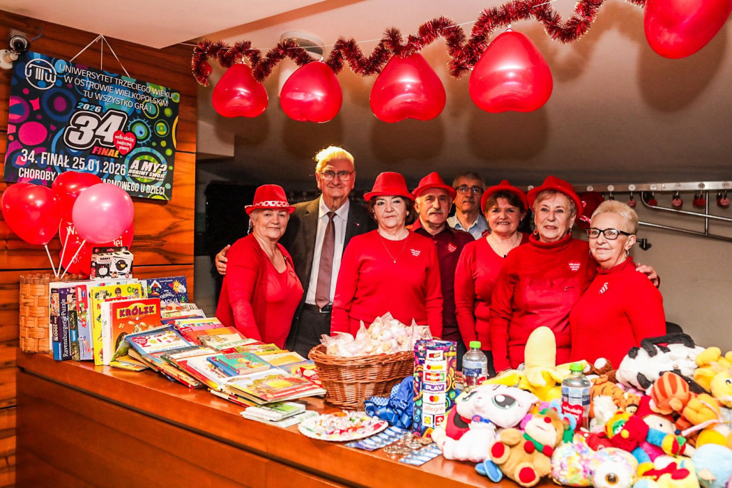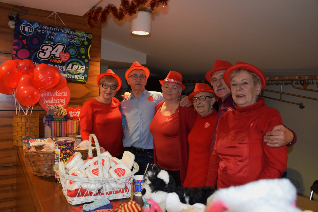 W Ostrowie Wielkopolskim, jak co roku, akcja ta skupiła wokół siebie ludzi o wielkim i otwartym sercu, a wśród nich słuchaczy Uniwersytetu Trzeciego Wieku, którzy swoją postawą i zaangażowaniem udowadniali, że nie patrzą obojętnie na potrzeby innych, że chętnie dzielą się dobrocią, empatią i życzliwością. Idąc za głosem serca, aktywnie spędzili czas z WOŚP uczestnicząc wraz z dziećmi i wnukami w różnych miejscach, gdzie grała Orkiestra. Można ich było spotkać podczas koncertów, pokazów, licytacji i innych imprez artystycznych i rekreacyjnych na Małej i Dużej Scenie Ostrowskiego Centrum Kultury, na Rynku, czy na Piaskach Szczygliczka. Dawali w ten sposób przykład młodszym, że pomaganie innym bez oczekiwania wymiernych korzyści sprawia, że czują się lepiej, że mogą dowiedzieć się czegoś o sobie samych i lepiej poznać siebie. Wyrażali przekonanie, że wspieranie i udzielanie komuś pomocy kształtuje ludzkie charaktery, umacnia więzi między ludźmi, ma korzystny wpływ na zdrowie i samopoczucie. Energią, uśmiechem i dobrym słowem pokazywali, jak budować wspólnotę. W ten sposób sprawiamy - usłyszałem od wielu z nich - że świat, w którym żyjemy staje się bardziej przyjazny, że WOŚP jest znakiem firmowych tego, co najlepsze w naszym kraju.