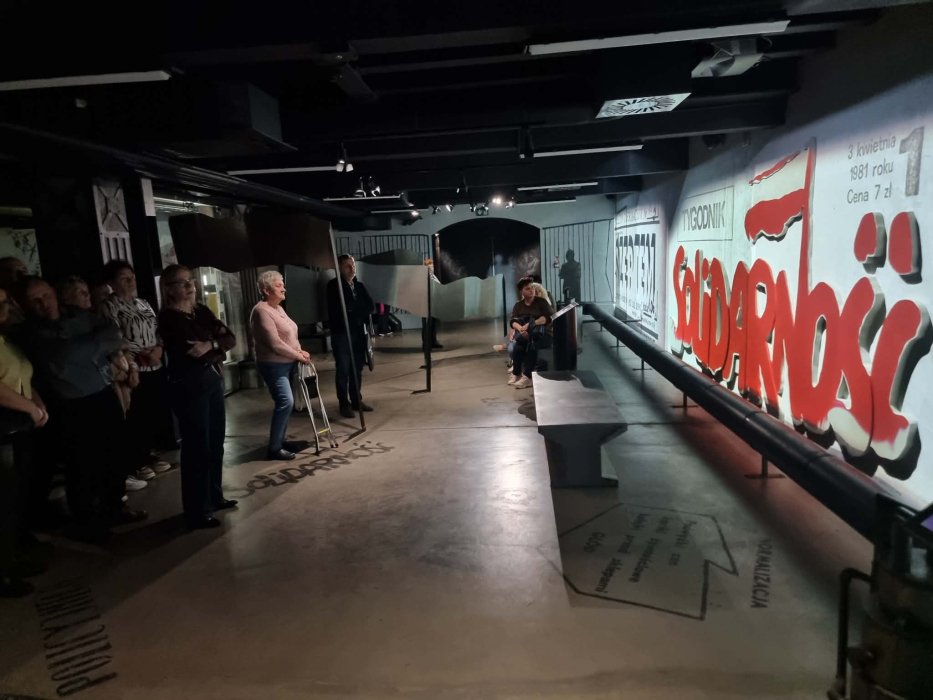 Uczestnicy odwiedzili Śląskie Centrum Wolności i Solidarności w Katowicach, gdzie zapoznali się z historią pacyfikacji kopalni „Wujek” oraz wydarzeniami stanu wojennego. Program obejmował również udział w spektaklu „Folwark zwierzęcy” w Teatrze Śląskim, który w artystyczny sposób ukazał mechanizmy władzy i manipulacji oraz ich wpływ na społeczeństwo. Dodatkowym punktem wyjazdu była wizyta w Radiostacji w Gliwicach – miejscu o szczególnym znaczeniu historycznym. Zwiedzanie obiektu stało się okazją do rozmowy o wartości wolności oraz jej roli w historii i współczesności.