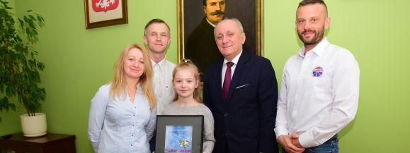 Starosta Ostrowski pogratulował odniesionych sukcesów i uhonorował młodą zawodniczkę oryginalnym dyplomem oraz drobnym upominkiem.