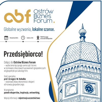 Już 28 kwietnia 2026 roku Ostrów Wielkopolski stanie się regionalnym centrum debaty o przyszłości gospodarki. W murach Forum Synagoga przy ul. Raszkowskiej 21 odbędzie się pierwsza edycja Ostrów Biznes Forum. To prestiżowe wydarzenie połączy świat wielkiej makroekonomii z codzienną praktyką prowadzenia lokalnych przedsiębiorstw, oferując unikalną przestrzeń do dialogu między samorządem a biznesem.