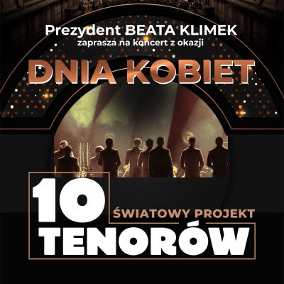 Muzyczny Dzień Kobiet w naszym mieście to już tradycja. Ze sceny ostrowskiej Areny znów wybrzmi muzyka. Gośćmi wielkiego święta wszystkich pań będzie grupa 10 TENORÓW. Na koncert zaprasza Prezydent Miasta Ostrowa Wielkopolskiego Beata Klimek.
