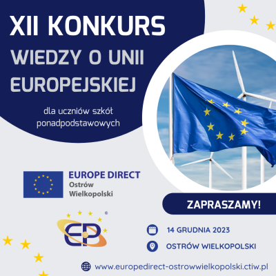 Zapraszamy uczniów szkół średnich do udziału w XII edycji Konkursu Wiedzy o Unii Europejskiej „Ty jesteś Europą!”.