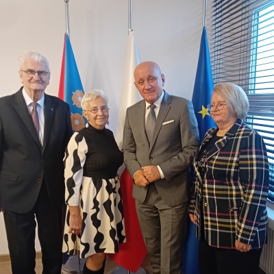To było niezwykle interesujące spotkanie, kiedy Starosta Ostrowski Paweł Rajski przyjął w siedzibie starostwa Zarząd Uniwersytetu Trzeciego Wieku w Ostrowie Wielkopolskim: Ewę Skibińską – prezes Zarządu, Kazimierza Nawrockiego – wiceprezesa Zarządu oraz Lucynę Kozłowską – skarbnika.