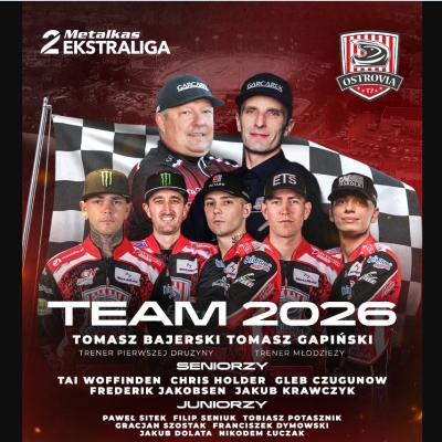Sezon 2026 w ostrowskim żużlu zapowiada się niezwykle interesująco. Zarząd zbudował bardzo mocny zespół, który na pewno przyniesie kibicom w przyszłym roku na pewno wiele wspaniałych wyścigów, zwycięstw i emocji. Prezentujemy poniżej kadrę Moonfin Malesy Ostrów Wielkopolski na sezon 2026.