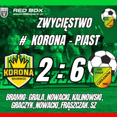 6:2 piłkarze Piasta Czekanów pokonali Koronę Wilkowice w wyjazdowym meczu 8 kolejki V ligi.
