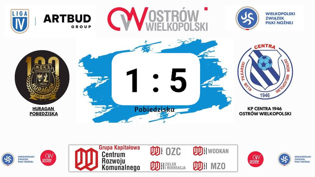 Zajmująca ostatnie miejsce w tabeli IV ligi Centra 1946 odniosła tyleż nieoczekiwane co okazałe zwycięstwo z Huraganem Pobiedziska 5:1.