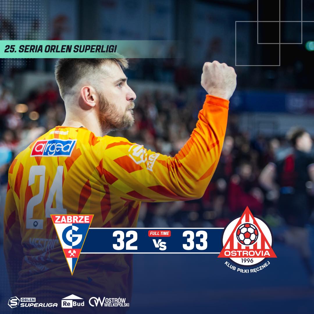 W przedostatniej kolejce rundy zasadniczej Rebud KPR Ostrovia pokonała na wyjeździe Górnika Zabrze 33:32 umacniając się na 3 miejscu w tabeli Orlen Superligi.
