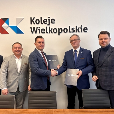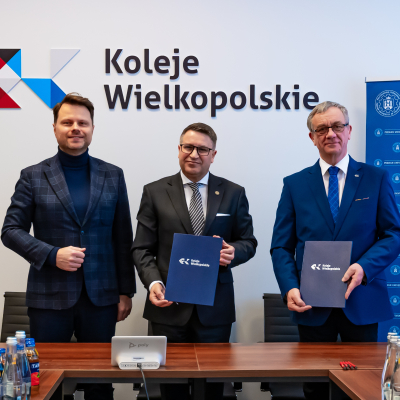 Dania 21 stycznia br. podpisano porozumienie o współpracy między Politechniką Poznańską, reprezentowaną przez Rektora, prof. dr. hab. inż. Teofila Jesionowskiego, a Kolejami Wielkopolskimi sp. z o.o., reprezentowanymi przez Prezesa Zarządu, Pana Marka Nitkowskiego oraz Członka Zarządu - Mikołaja Grzyba.