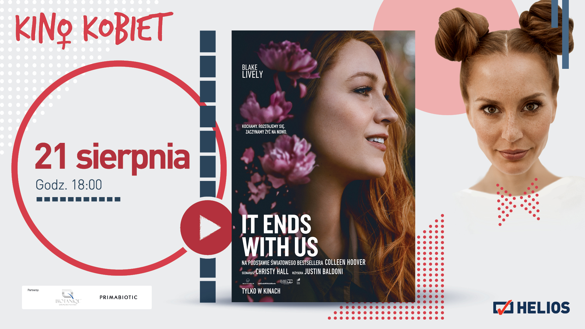 W sierpniu na ekranach multipleksów Helios ponownie zagości Kino Kobiet. To uwielbiany przez widzów sieci cykl, łączący filmowy seans i dodatkowe, angażujące atrakcje. W ramach jego najbliższej odsłony już w środę, 21 sierpnia zostanie wyświetlony pełen emocji film „It Ends With Us” z Blake Lively w roli głównej.